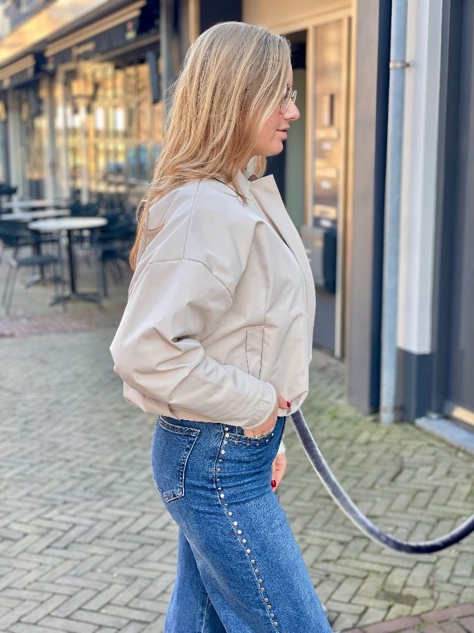 Voeg een vleugje casual chic toe aan je garderobe met ons beige ballon jacket. Dit veelzijdige jacket is perfect voor de koelere dagen en combineert moeiteloos comfort met een trendy look. Het lichte, neutrale beige maakt het gemakkelijk te stylen met zowel jeans, leggings als jurken.
