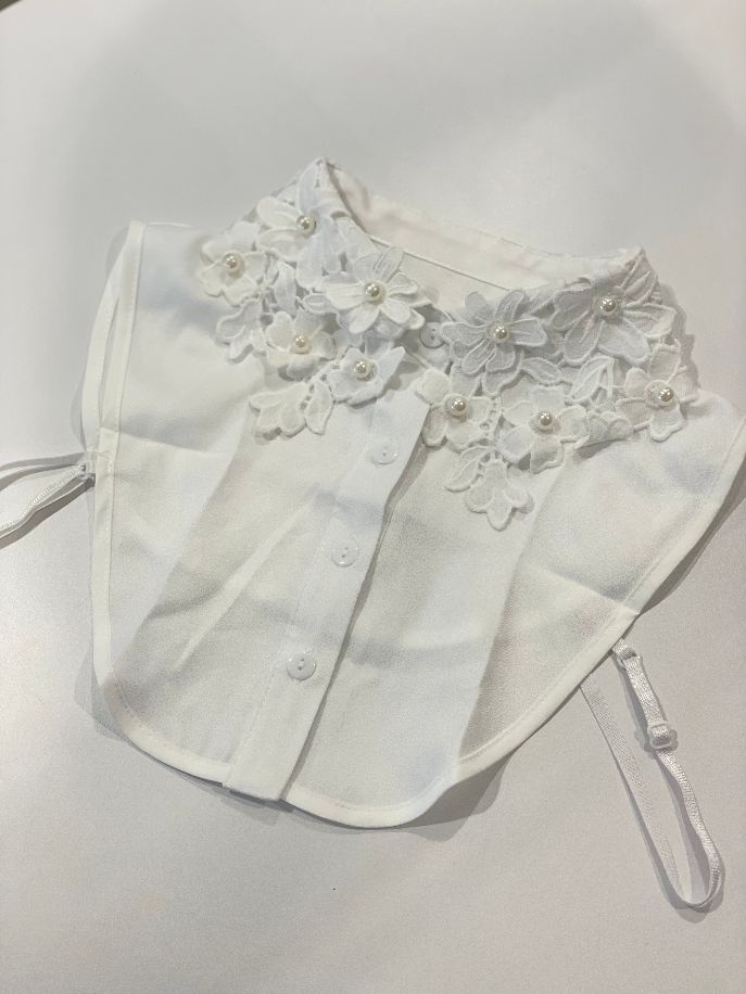 Laat je outfit bloeien met deze elegante kraag vol geborduurde bloemen en parels! De geborduurde bloemen zijn subtiel versierd met glinsterende parels, waardoor de kraag een romantische en verfijnde uitstraling krijgt.