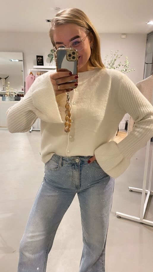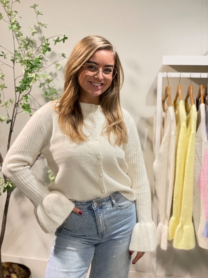 - Vest met wijdlopende mouwen en parelknopen