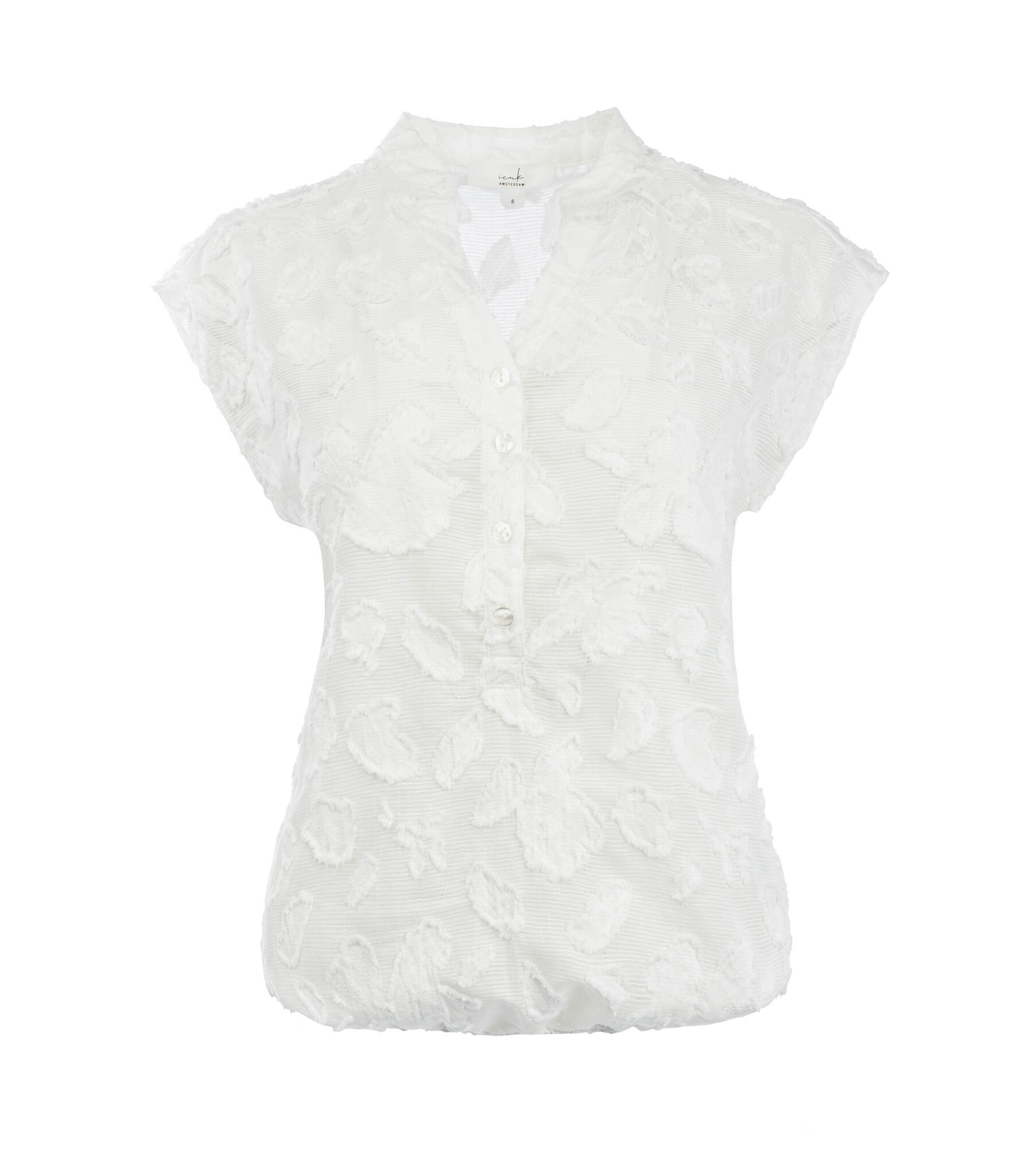 Productpecificaties ICNK Amsterdam Cycrina raw edge jacquard blouse - off white: