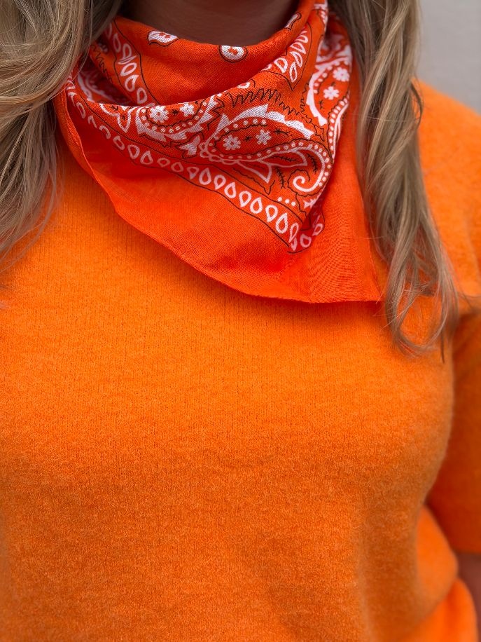 Deze bandana sjaal kan je op verschillende manieren dragen. Super handig om jouw koningsdag outfit compleet te maken! Deze sjaal is een echte eye catcher van je kingsday outfit!