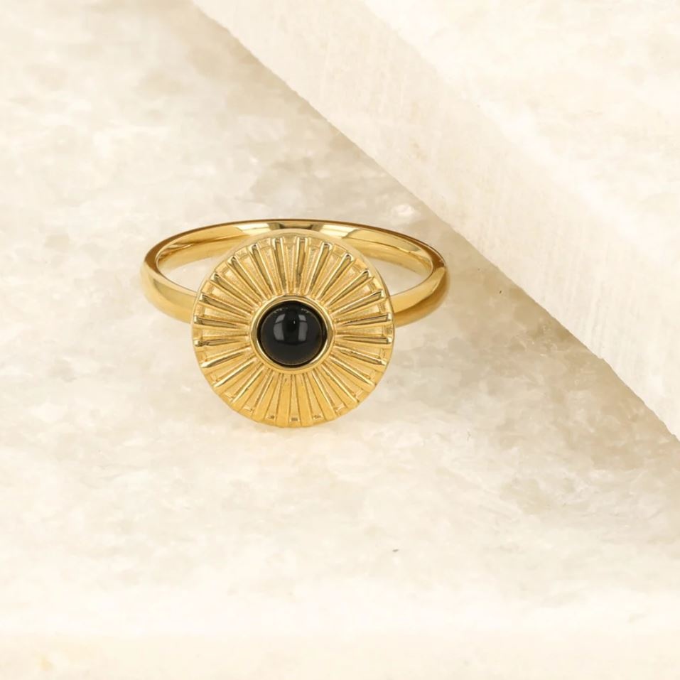 My Bendel gouden zonnetje ring - onyx edelsteen