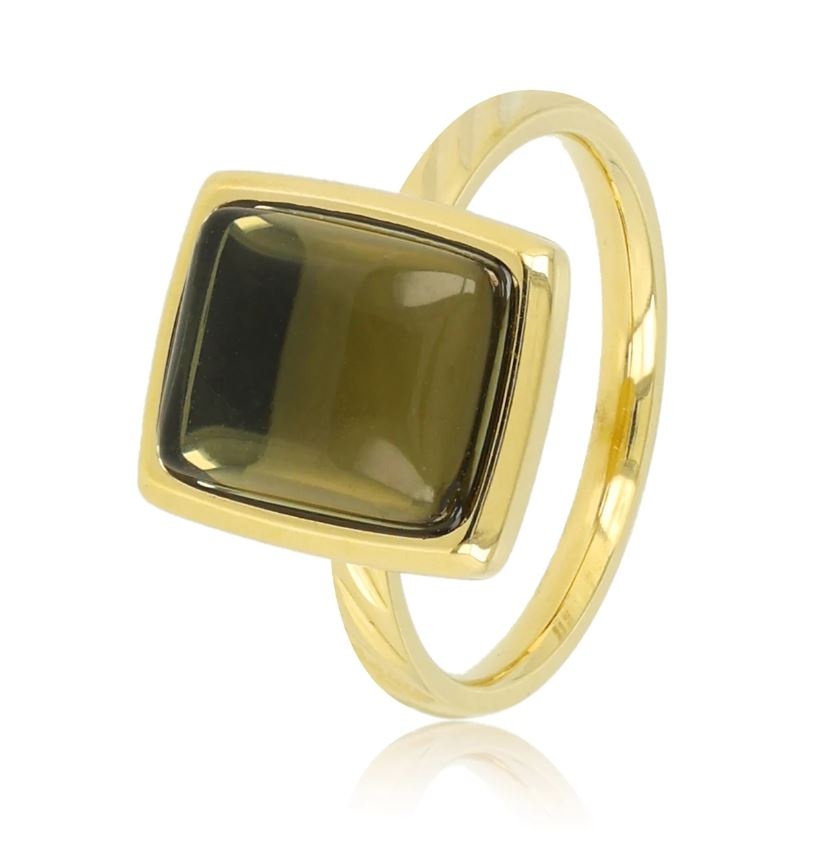 Productpecificaties My Bendel striped gouden ring met 11mm licht groene glassteen: