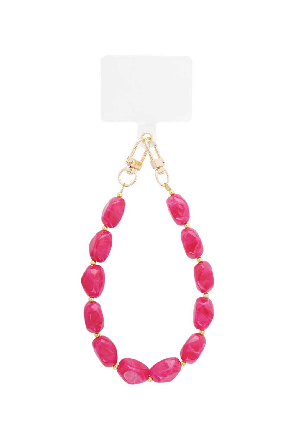 Geef je telefoon een stijlvolle upgrade met deze kralen telefoonkoord in trendy rozerood kleur.