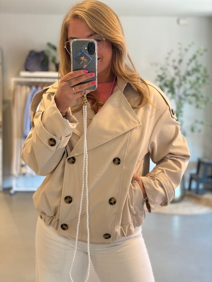 De jas heeft een eigentijdse pasvorm en is ideaal als tussenjas voor het voorjaar en najaar. De neutrale beige kleur maakt hem gemakkelijk te combineren, terwijl de unieke mix van stijlen zorgt voor een trendy en onderscheidende look. Draag hem casual met een jeans en sneakers of ga voor chic met een pantalon en enkellaarsjes.